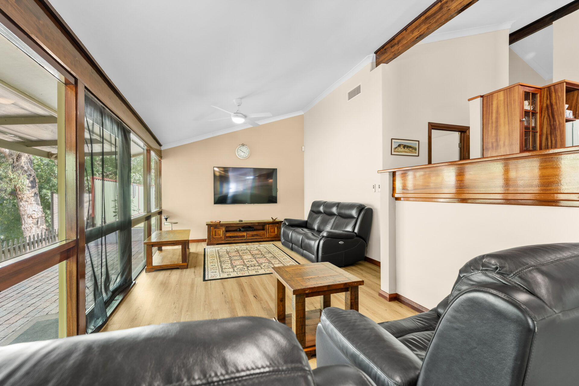 What truly sets this home apart is what lies beyond the back fence. Step outside and the suburb melts away, replaced by towering River Gums, paperbarks and the gentle flow of Jane Brook. With no rear neighbours and uninterrupted natural outlooks, the setting feels worlds away from suburbia yet everyday conveniences remain close at hand.
